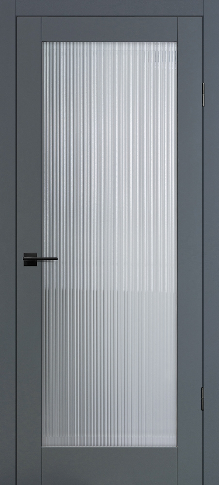 Полотно комплектуется объемной филенкой с фрезерованным рисунком "под рейку". В остекленных полотнах используется рифленное стекло с красивым прокатным узором в виде полос. Отлично смотрится в неоклассических и лофтовых интерьерах.