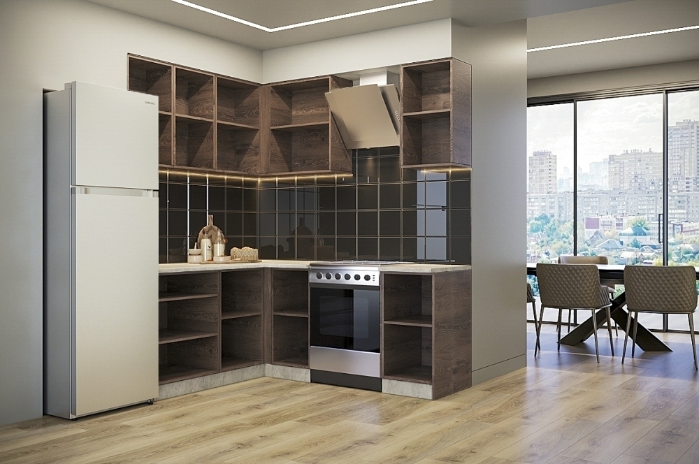 Ручки, столешница, стеновая панель, мойка, смеситель и бытовая техника продаются отдельно.