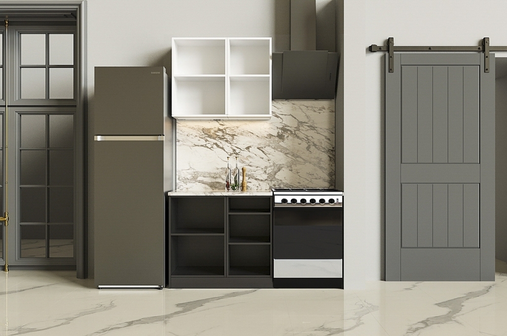 Ручки, столешница, стеновая панель, мойка, смеситель и бытовая техника продаются отдельно.